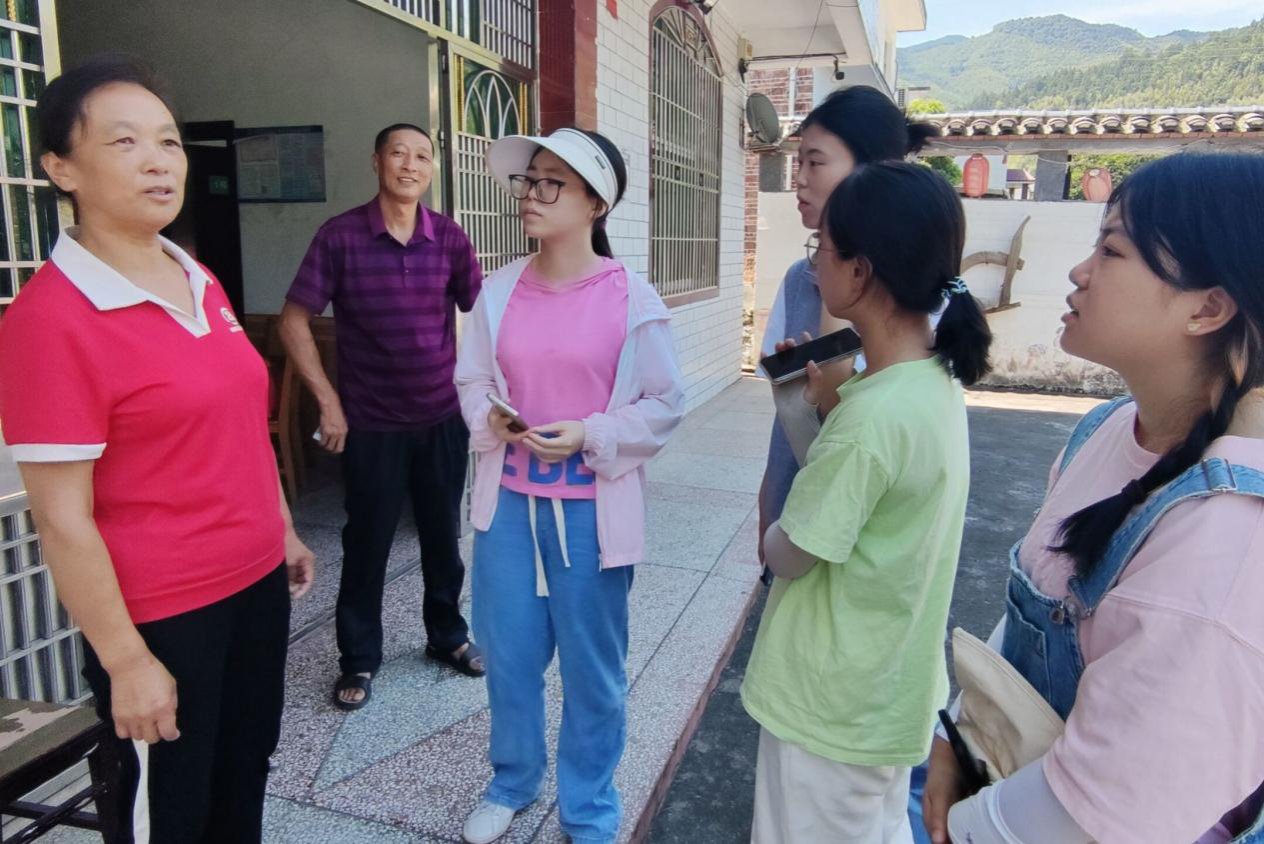 调研组成员前往十都镇洋岐畲族村谭翠辉、兰舒平夫妇的民宿——“畲族人家”农家乐参观。谭翠辉向成员们介绍“畲族人家”农家乐由基础民宿和果园所组成,游客在入住民宿的同时可以进入果园采摘黄桃品尝,果园内种植有60多棵黄桃和奈李,每年的产量以及销量为全村第一。对于果园的销售模式,谭翠辉、兰舒平夫妇表示每年7月20日左右锦绣黄桃开园,开园后的一个月为全年游客量最大时期,黄桃可直接被前来住宿的游客购买完。