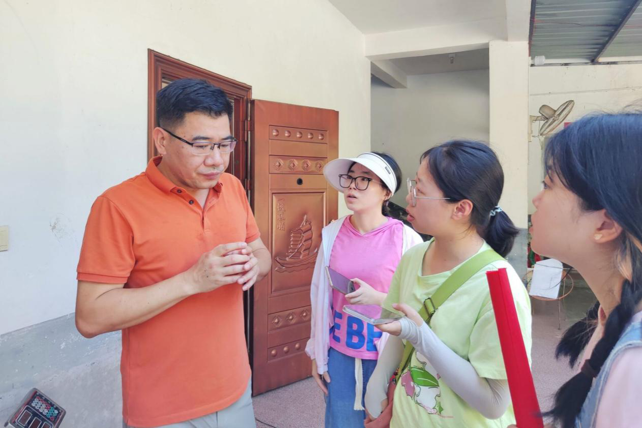 谭翠辉夫妇与调研组成员交谈
