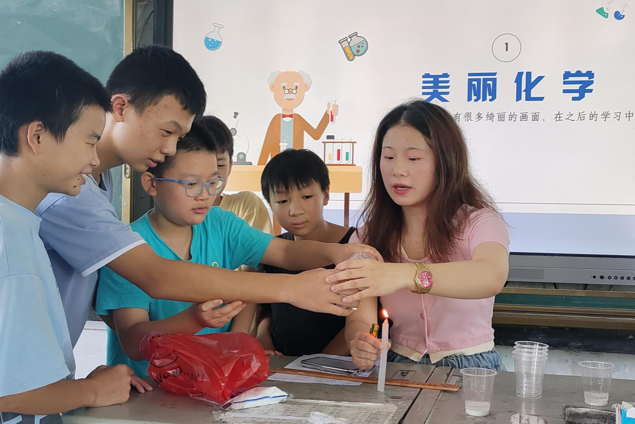 (通讯员 李丹 陈春雨)7月22日上午,伟德国际victor1946三叶草园艺社赴郴州市苏仙区五里牌中学暑期社会实践团开展趣味化学课程,实践团成员江艾雯担任此次课程主讲人。