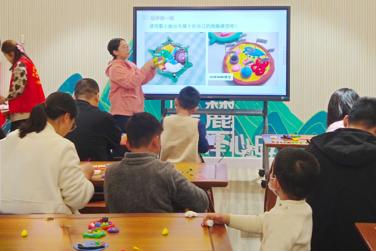 志愿者教小朋友做细胞模型