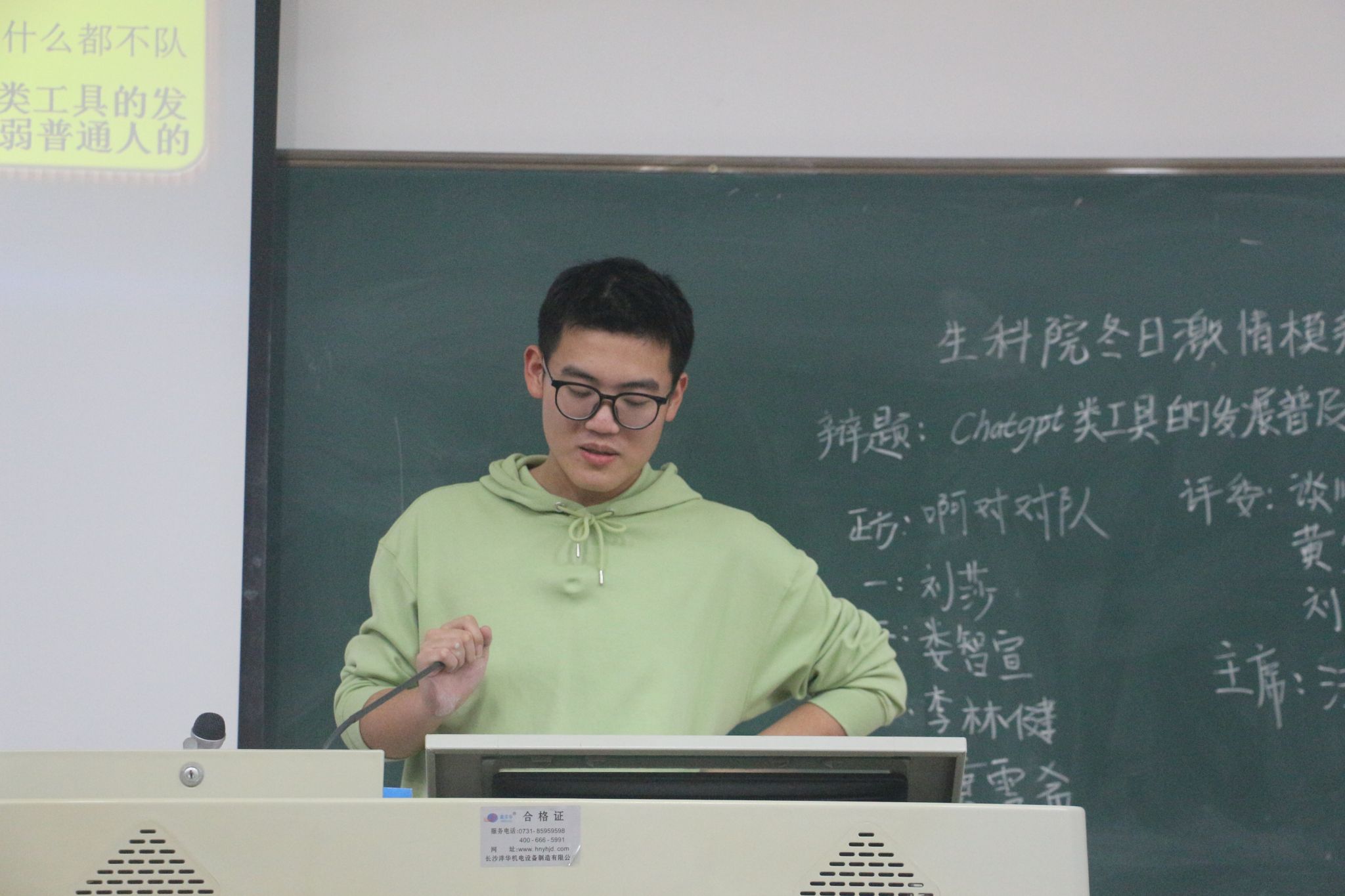 此次辩论赛围绕“ChatGPT类工具的发展普及会提升/削弱普通人的思维能力”展开。生科院辩论队2022级队员通过指导新生备赛,从辩论环节与辩论技巧两大方面指导新生熟悉辩论赛场的攻防。新生们在备赛期间查阅相关资料,与队友讨论辩题中的知识盲点,并学习辩论赛盘问、质询等环节中的辩论礼仪和辩论技巧。选手们在赛场上输出自己的观点,拆解彼此数据,攻防交锋。最终 “啊对对队”“正方说什么都不队”“从容应队”获得此次比赛胜利,2023级新生黄雯希、陈茵璇获最佳辩手称号。对于各位选手比赛中的表现,评委给予肯定与表扬。赛后,队员们针对此次比赛中出现的主战场和逻辑链进行复盘。生科院辩论队荣誉指导谈顺从话术技巧、临阵心态、职责划分等几个方面进行教学,结合赛场实际与其亲身实践,讲解不同局势下的应对策略,丰富了2023级新生的理论知识与实践经验。