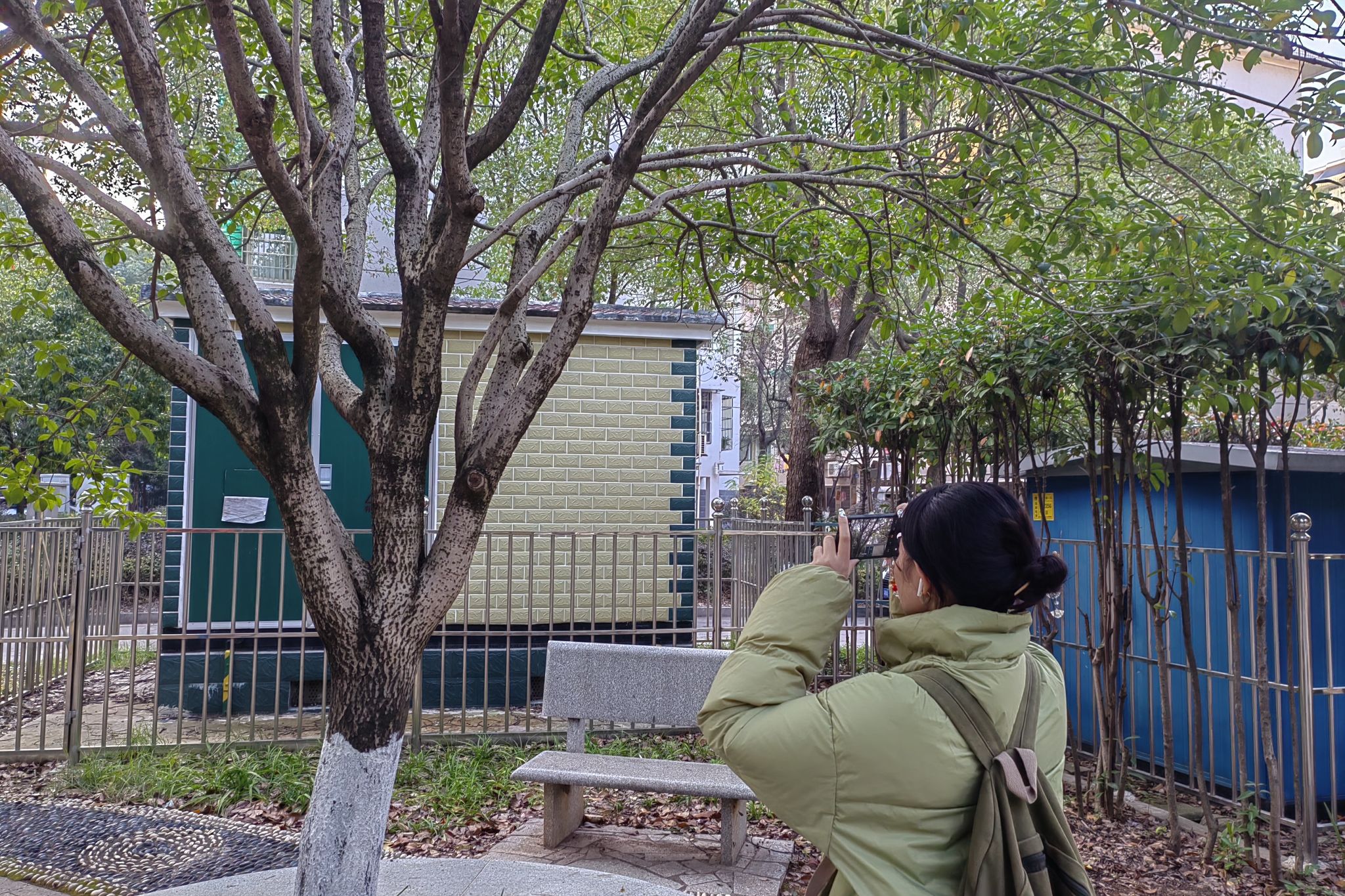 此次活动分为树木品种鉴别、科普讲稿撰写和筹备科普视频拍摄三部分。在许苏群的带领下,志愿者们观察肖劲光故居周围树木的枝干、叶形、叶缘、叶脉、果实等部位,借助所学的植物学知识及形色等植物鉴别APP,完成树木种类的鉴别。在了解树木种类的基础上,志愿者们通过查询相关资料辅助科普讲稿的撰写,讲稿内容主要包括所观察树木的类别,其对应的叶、花、枝干等结构的形态特征、分布地区以及相应的应用价值。志愿者又在科普讲稿的基础再次进行实地考察,确定拍摄位置和拍摄角度,为拍摄科普视频做准备。