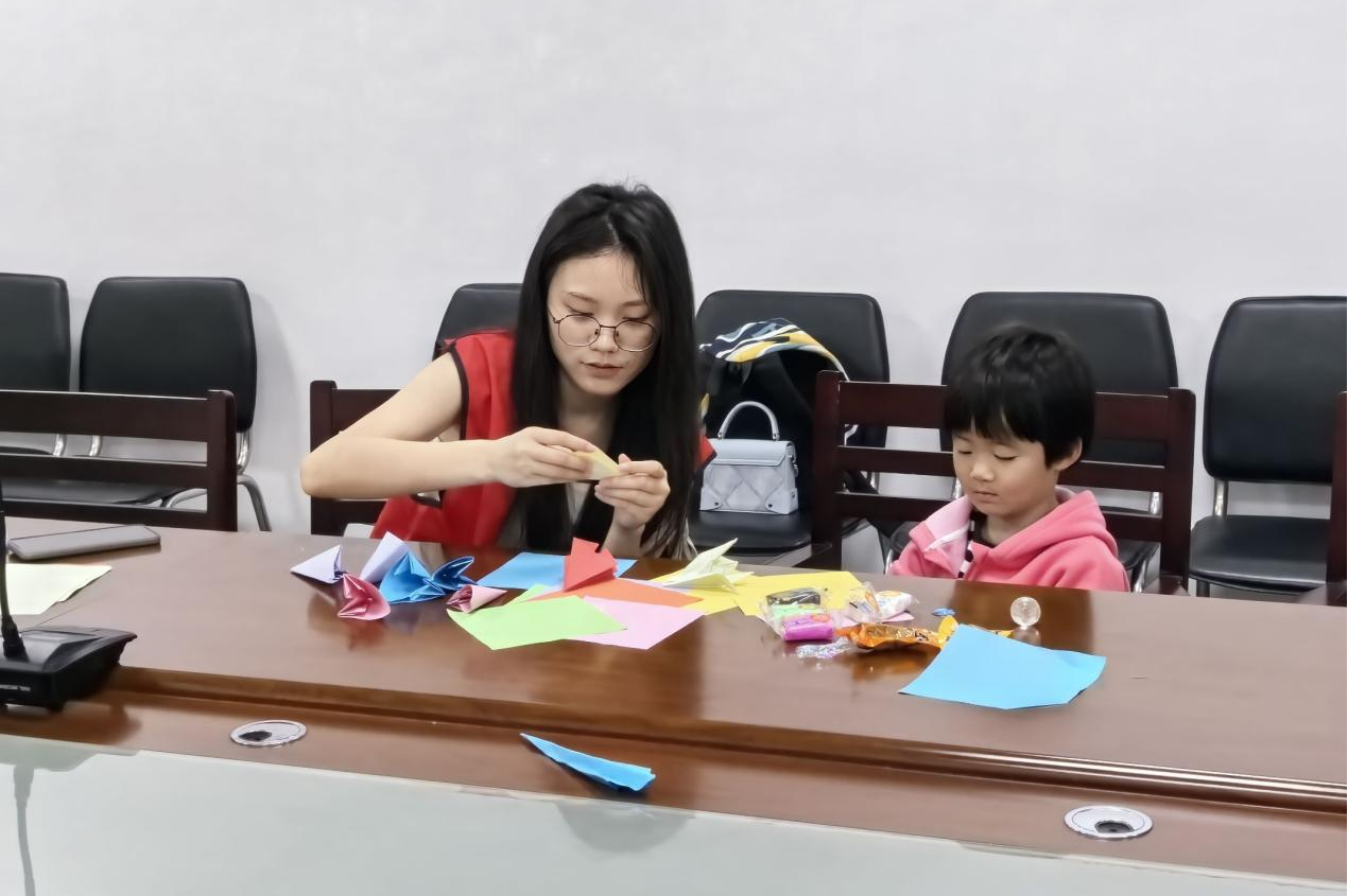 志愿者协助小朋友进行手工制作