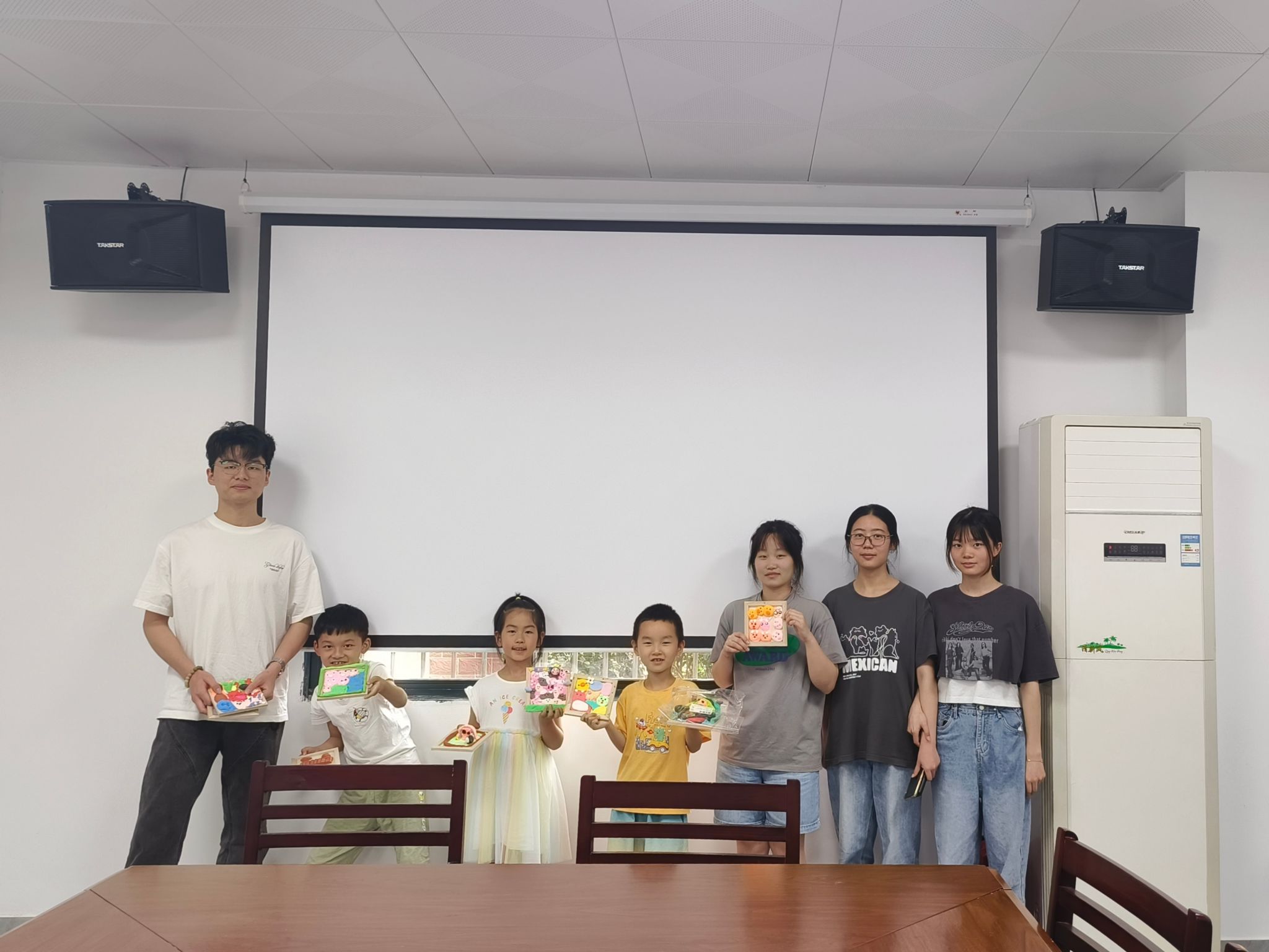 此次活动由动物知识科普、挤挤猪相框制作和知识抢答三部分组成。主讲人通过PPT的形式介绍日常生活中常见动物的特征,如猪的大鼻子、兔的长耳朵和鱼的流线型身体等,并为小朋友们讲解制作相框的步骤,即泥绘、固定以及封合。志愿者为小朋友们分发彩泥相框等材料,帮助小朋友使用彩泥捏出鹰、猪等动物,待其硬化后将其放进相框中,制作出成品。随后,志愿者们与小朋友进行看图猜动物知识抢答,并合影留念。