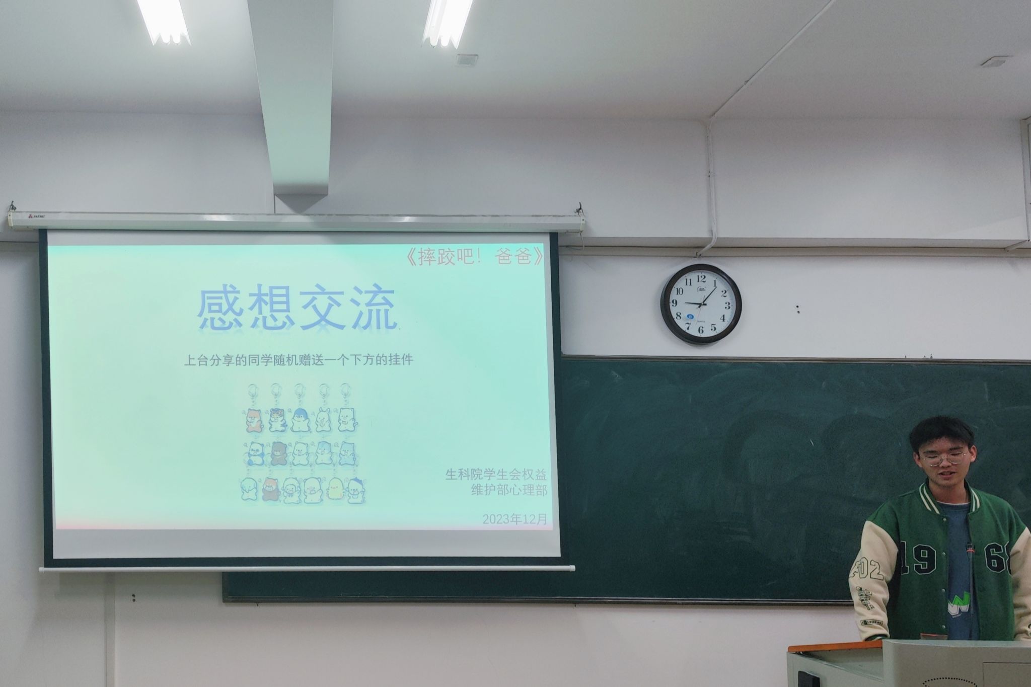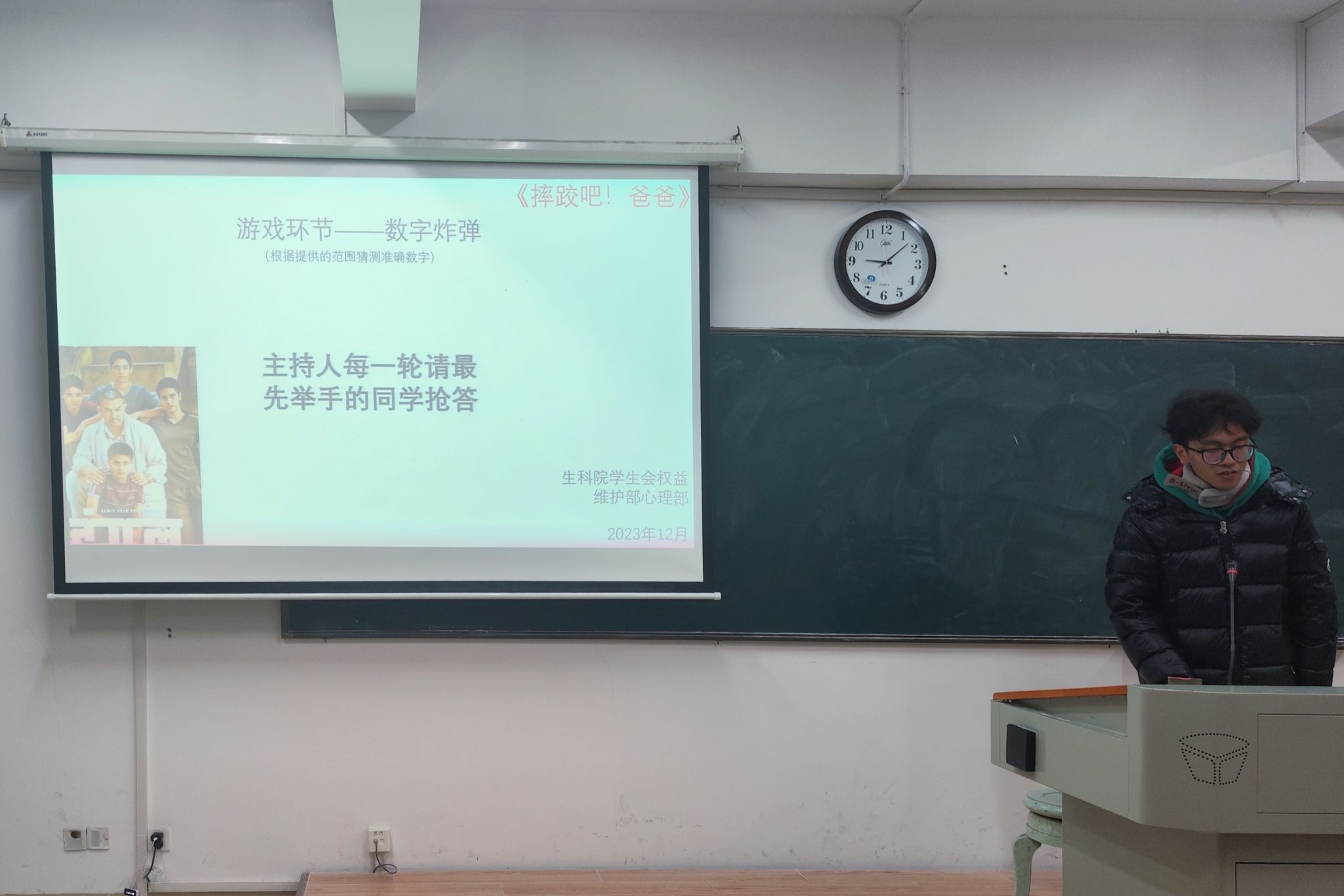 吴念熹为大家介绍观影的注意事项,提醒同学们在观影过程中保持安静,勿打扰他人观影。她说明此部影片《摔跤吧爸爸》是根据印度摔跤手马哈维亚·辛格·珀尕的真实故事改编而来,讲述了曾经的摔跤冠军辛格培养两个女儿成为女子摔跤冠军,打破印度传统的励志故事。同学们聚焦电影的经典片段,分享自身的观影感悟与收获,表示通过此次观影活动自己认识到,遇到困难迎难而上才是解决问题的最好办法。同时,为增强同学们的体验感与参与感,生科院权益部为大家组织了心理趣味游戏“过目不忘”,并由吴念熹为获胜同学颁发奖品。