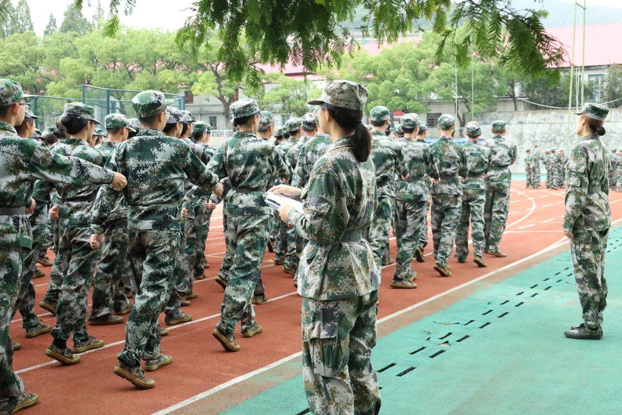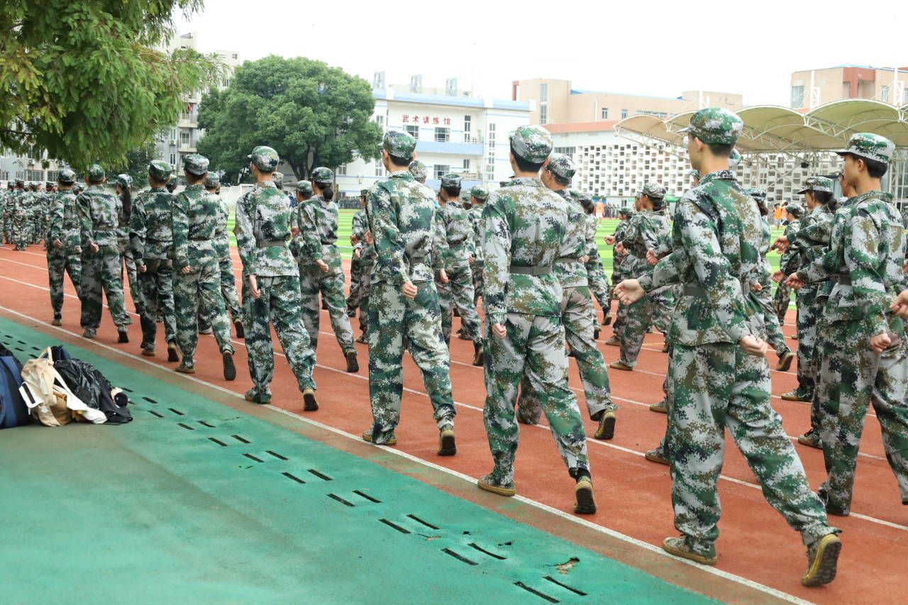 图为新生们进行了齐步走训练,在统一的指令下,他们脚步轻快有力地行进,双臂自然下垂,腰背挺直,步伐规整一致。