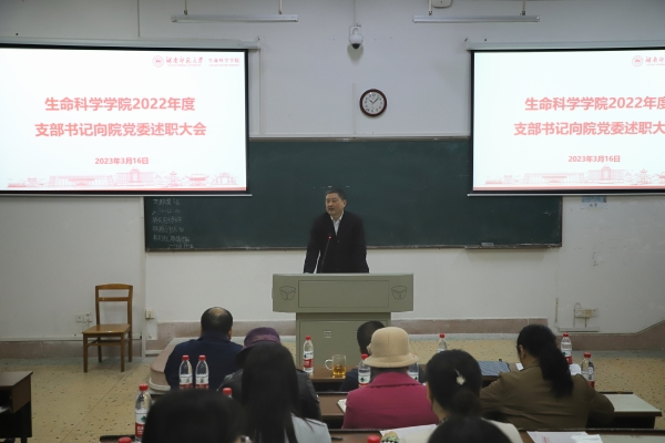 (通讯员 杨沫兰 侯柏良)3月16日,伟德国际victor1946于生科院4号楼103教室召开2022年度支部书记向院党委述职大会,学院党委书记谢罗庚、党委副书记彭赛丰、湖南省生物研究所副所长王素娥、动物多肽药物创制国家地方联合工程实验室副主任丁金花以及各党支部支部书记、支委等59名党员参加会议,学院党委委员、专职组织员蒋能胜担任此次活动的主持人。