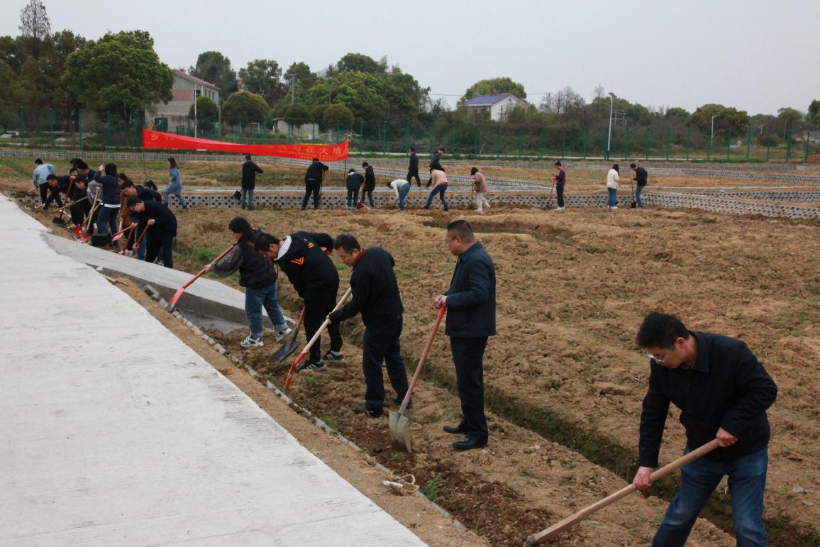 在学习讨论后,刘少军院士和谢罗庚书记带头抡起了农具,走到了稻鱼综合种养实验田间,将“论文写在大地上”落到实践中,带领大家对稻鱼综合池田生态坡进行前期平整工作。在耕作间,覃钦博教授总结了近期和刘少军院士一起对省内外稻鱼综合种养的调研情况,畅谈生态种养新模式的发展前景。师生们井然有序,边学边干,完成了多块大实验田的生态坡平整工作。对于很多学生来讲,这都是第一次下田,锄头抡久了,手有点酸痛。刘少军院士安慰和鼓励大家说:“大家要多来锻炼,锻炼多了就不痛了。我们要常来这里调研实践,开动脑筋,创新创建生态养殖模式,要把论文写在大地上”。师生们“人心齐、干劲足、执行强”的风貌在春日的田间谱画出了一道美丽的风景。