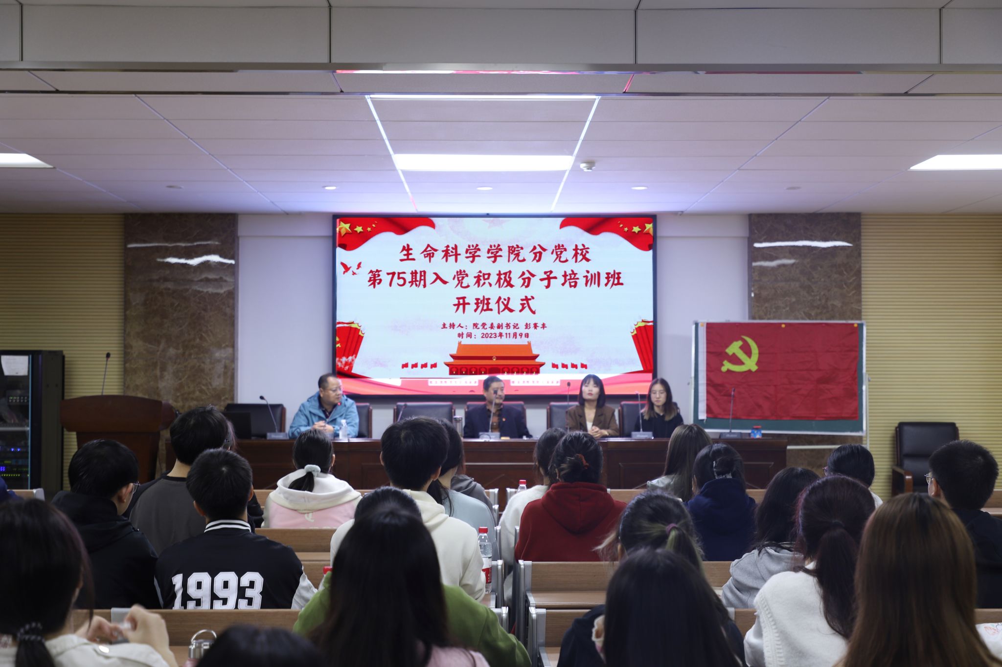 (通讯员 李嘉昕 陈怡辛 龙婵)11月9日晚,伟德国际victor1946于生科院三号楼B307学术报告厅举办第75期入党积极分子培训班开班仪式。生科院正处级专职组织员蒋能胜、生科院党委副书记彭赛丰、生科院学生党支部书记吴晴、生科院第75期入党积极分子培训班全体成员参加此次仪式。仪式由院党委副书记彭赛丰主持。