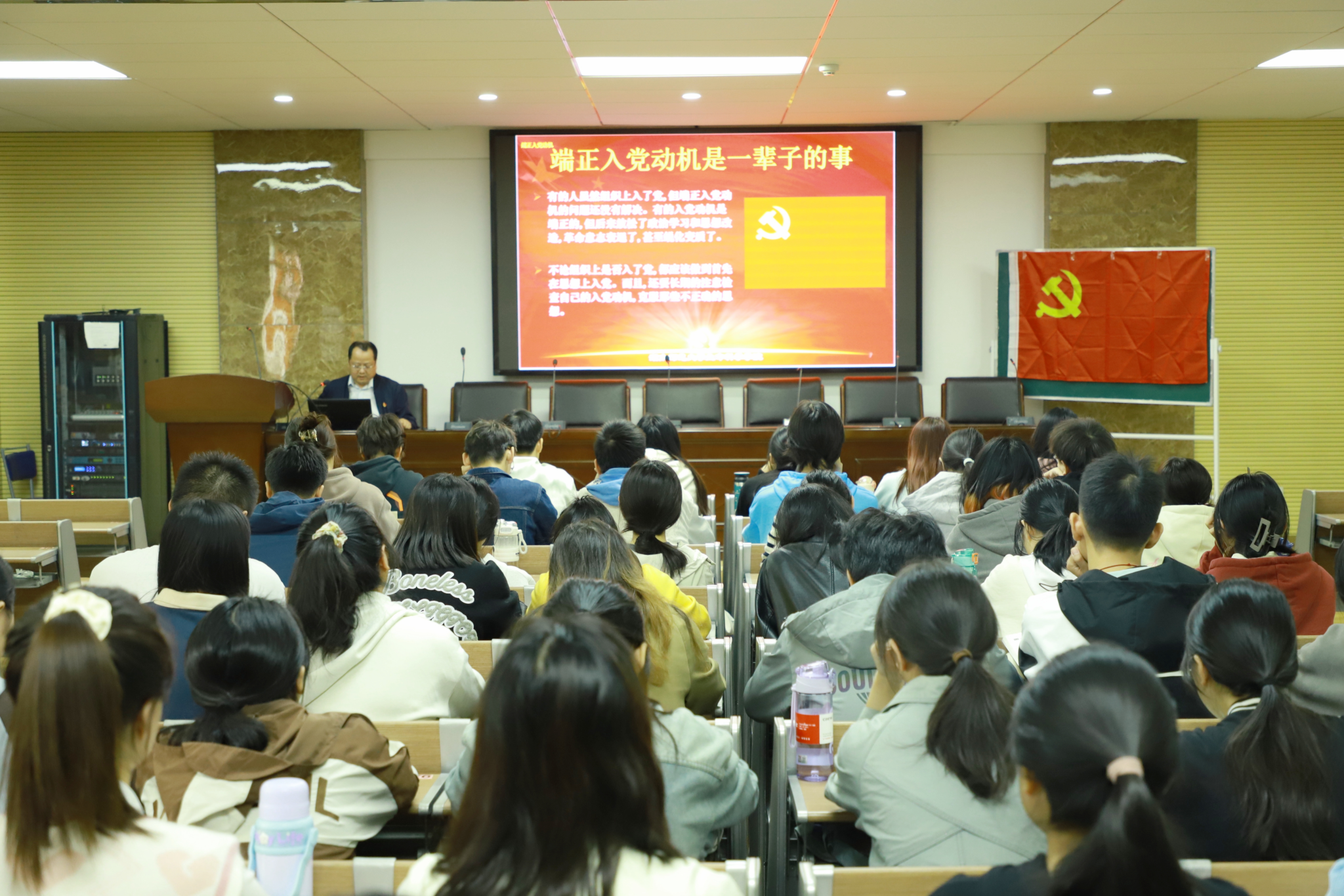 党课培训环节,院党委副书记彭赛丰以《端正入党动机,加强党性修养,争取早日成为合格的共产党员》为题,从三个方面与同学们进行交流。第一,端正入党动机。他表明正确的入党动机是入党的最基本要求,并从其内涵、要求、实现途径分别进行阐述。第二,自觉接受党组织的培养、教育和考察,正确认识和对待党员标准。第三,努力学习并领会党的二十大精神,争取早日加入党组织。此外,彭赛丰呼吁学员们要坚定不移听党话、跟党走,怀抱梦想又脚踏实地,敢想敢为又善作善成,立志做有理想、敢担当、能吃苦、肯奋斗的新时代好青年。学员们纷纷表示,将以更加饱满的热情积极投身到学习和实践中去,不忘初心、牢记使命,为实现中华民族伟大复兴的中国梦贡献自己的青春力量。