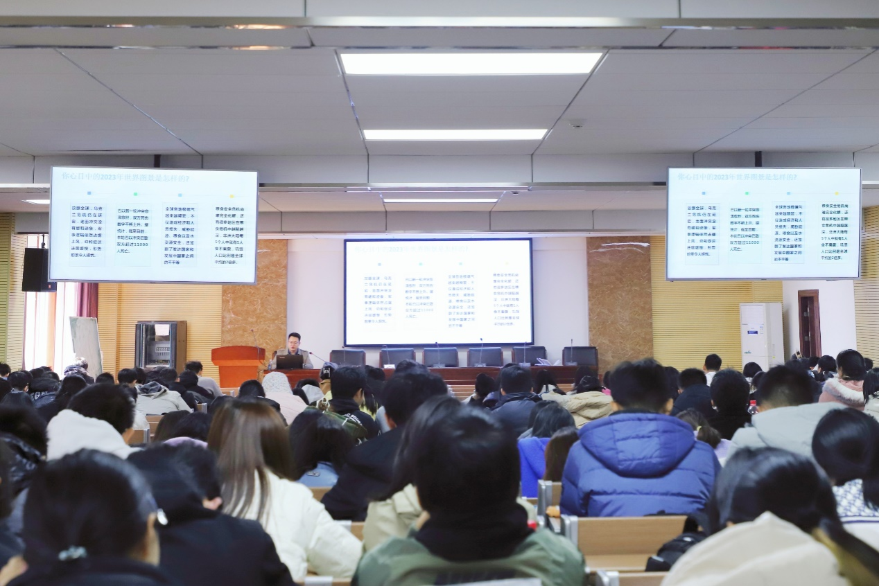 彭赛丰就当今我国经济发展形势、中国经济向好发展的信心与底气、当前我国经济发展的重点三方面进行讲解。他结合疫情对国际经济与中国经济的影响以及中国作出的措施,说明当前我国经济发展的机遇与挑战,展示了中国经济发展的实力与底气。陈佳以习近平总书记提出的“世界之变、时代之变、历史之变”展开讲课,结合国际形势与纠纷,向同学们解读三个之变的具体内涵。同时,他就中国如何应对“三个之变”,大学生如何应对“三个之变”两方面进行阐述,说明中国应对的举措与进程,表示大学生要把握机遇与挑战,在时代洪流中激流勇进。