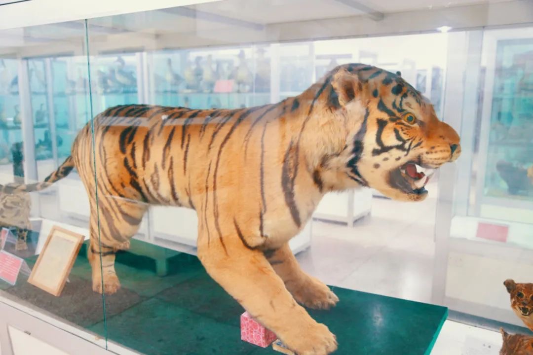 动物标本馆内馆藏各类动物标本6万余份,主要分为脊椎动物与无脊椎动物陈列室。其中有远涉重洋的千斤巨龟、濒临灭绝的华南虎、重回故土的麋鹿“四不像”、“水中大熊猫”中华鲟、千姿百态的昆虫......应有尽有,令人眼花缭乱。