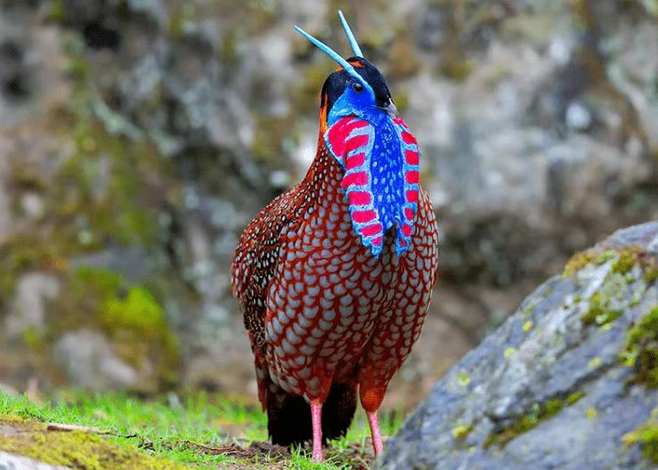 红腹角雉(Tragopa temminckii),属鸡形目雉科角雉属,其别名有娃娃鸡、寿鸡、红鸡。该物种属于国家二级保护动物,被列入世界濒危鸟类名录N级和中国《国家重点保护野生动物名录》二级。