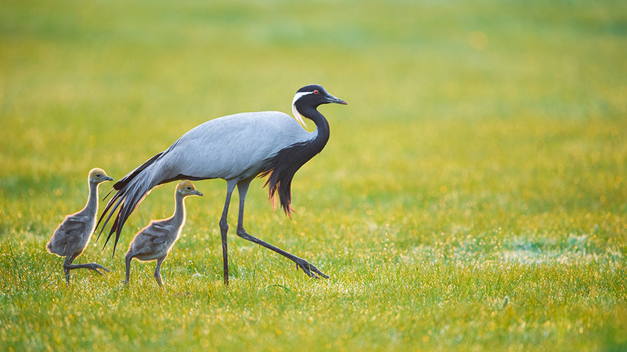 全球种群数约230000~280000只(Wetlands International 2006)。我国约有100~10000繁殖对,迁徙旅鸟50~1000只(Brazil 2009)。蓑羽鹤在我国种群数量较少,属非常见珍稀鸟类。