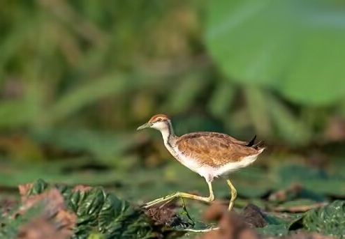 栖息:水雉栖息于富有挺水植物和漂浮植物的淡水湖泊、池塘和沼泽地带。