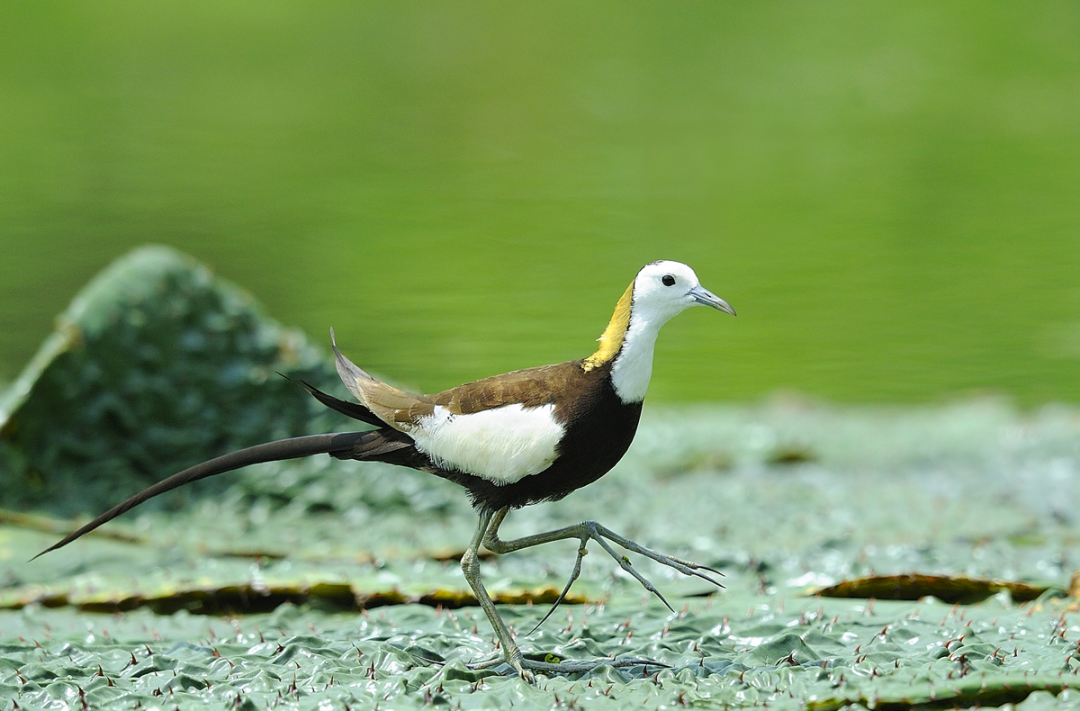 纤细的身形,轻盈的步伐,它从容地抬足穿梭于睡莲、荷花、菱角之中,艳丽的羽毛上下摇曳,湖泊、池塘、沼泽,都是它钟爱的舞台,它就是凌波仙子——水雉。