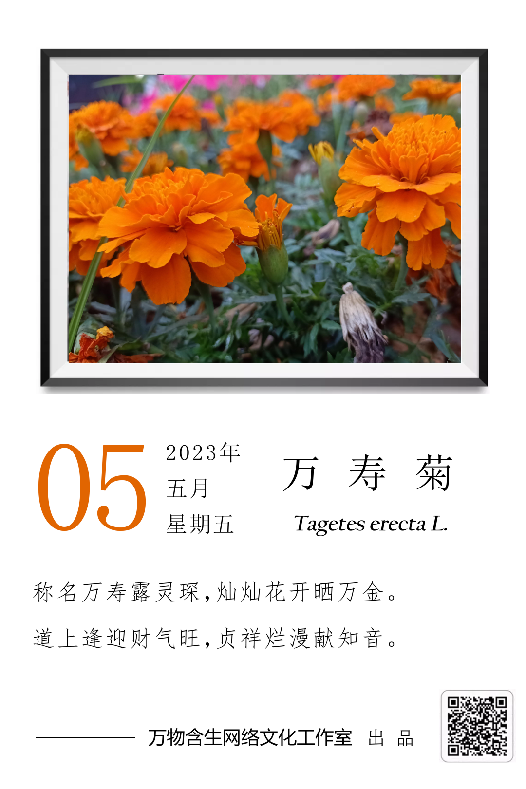 一朵朵万寿菊开得正好,有红的、橙的、白的,有花瓣皱缩的,也有花瓣平整的,有赶趟一起开的像是商量好了,也有单独开放的。万寿菊可不比松高,不比月季香,但我每看到它,还是会不由的欣喜,不由的去和它合个影。
