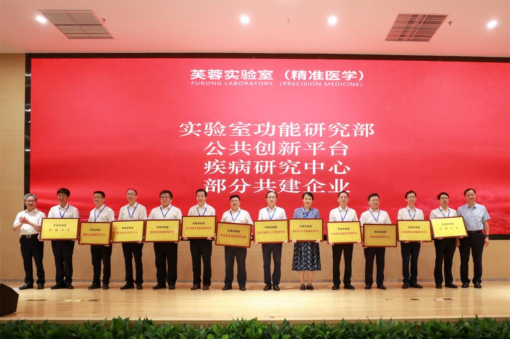 省政府副秘书长周义祥主持仪式,湖南省副省长陈飞和中南大学党委书记易红共同为芙蓉实验室揭牌。省科技厅党组书记、厅长李志坚,省卫生健康委党组书记、主任李小松向实验室共建单位代表进行了授牌。