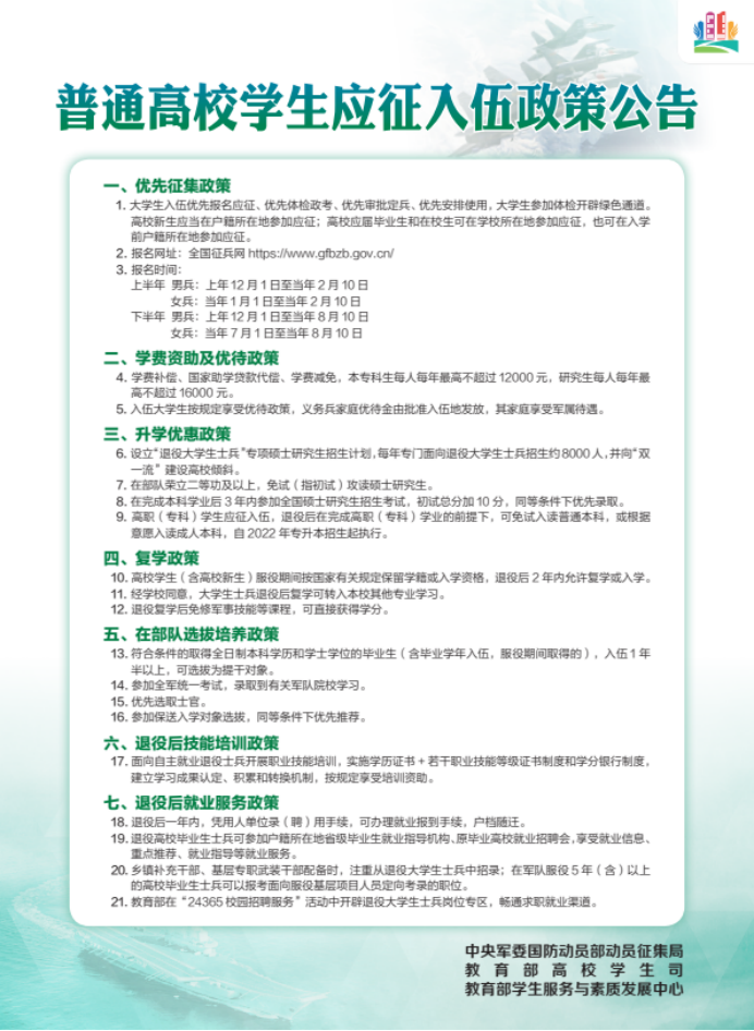 普通高校学生应征入伍政策公告